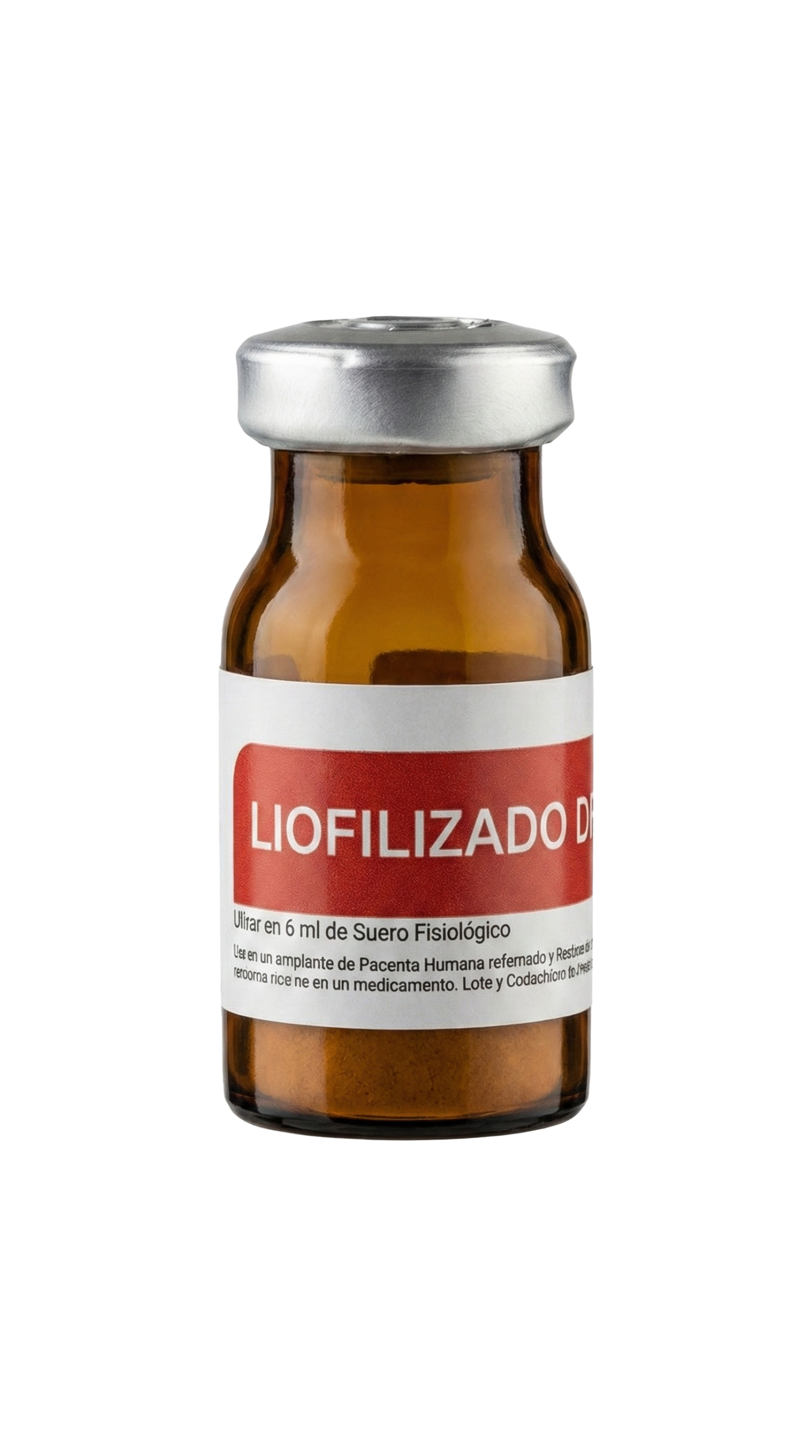 Frasco con placenta liofilizada + cordón umbilical. Uso médico.
